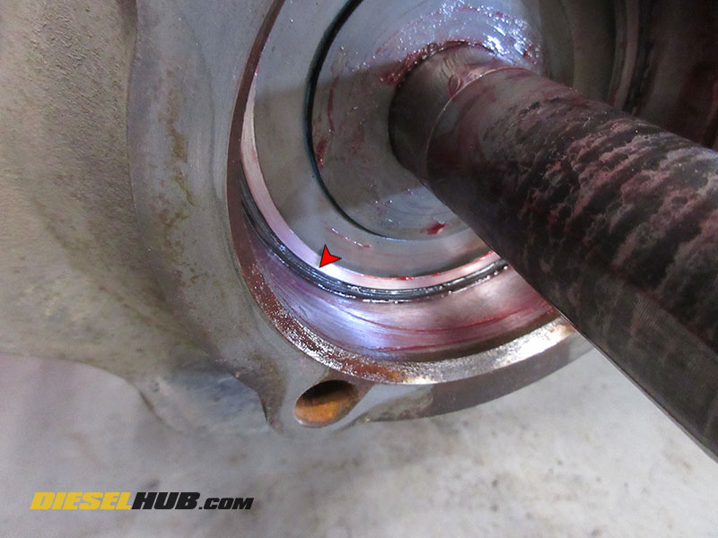 • Inspect the large o-ring located behind the wheel hub in the steering knuckle. If it is not damaged, it may reused and there is no reason to remove it. Clean any dirt/debris from inside the steering knuckle.