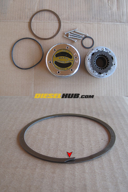 • The Warn Premium locking hub kit includes a new lock ring and snap ring, so do not attempt to reuse the old hardware.