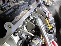 • Release the STC fitting on the braided stainless steel oil line and disconnect it from the standpipe using tool OTC 6594 (see step below for specific information on using tool). Let the oil line drain into the cylinder head then set aside.