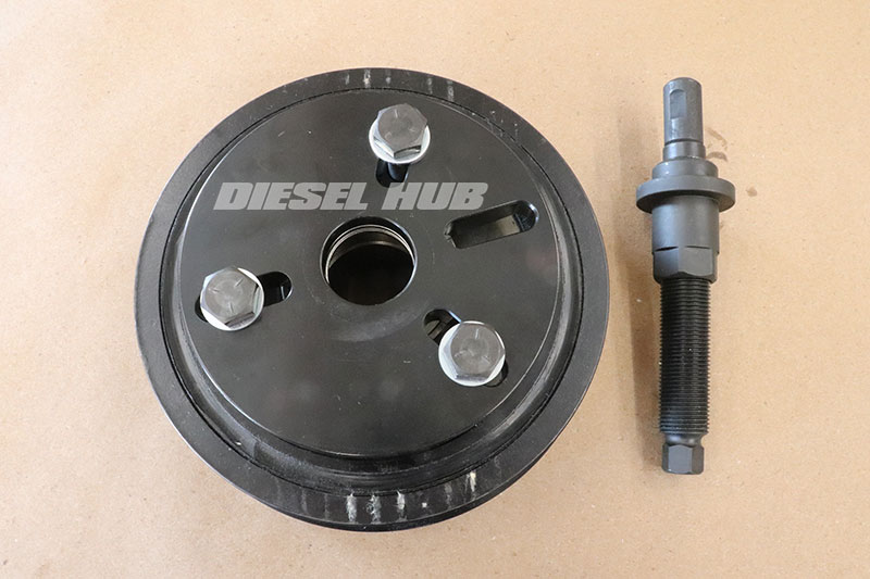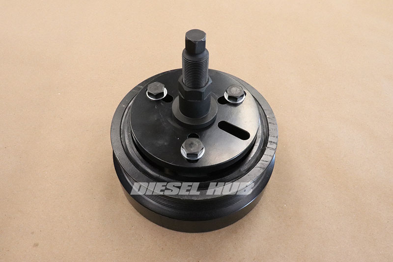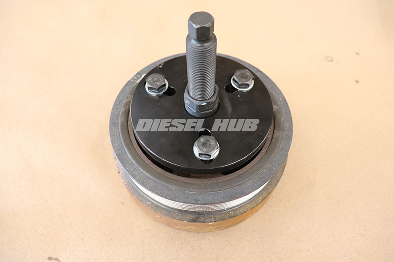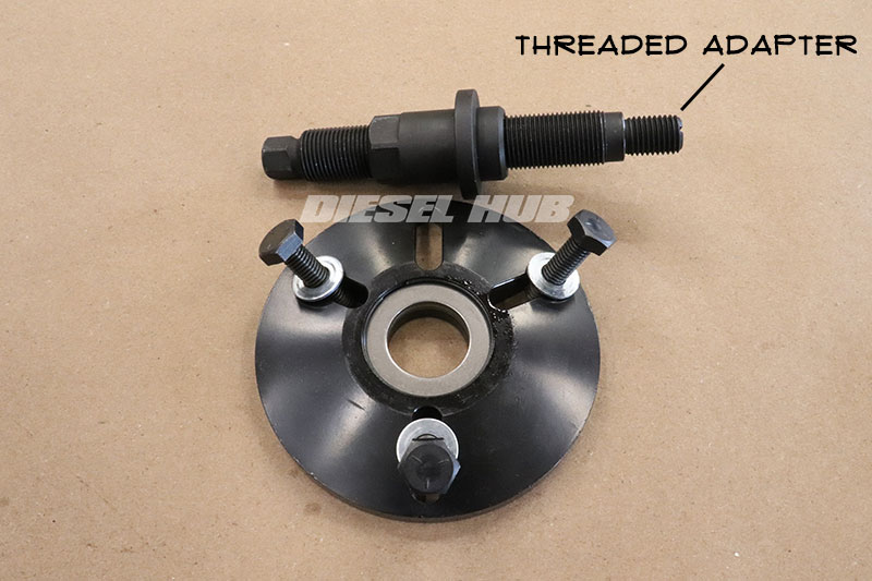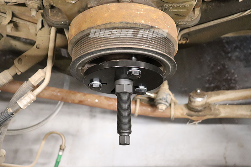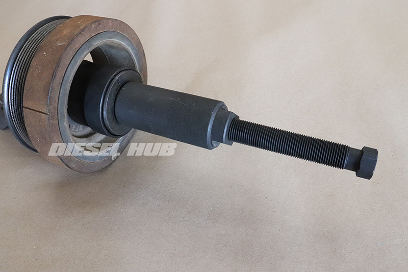 - Note that the damper puller should also double as the installation tool, but its configuration will be different. Familiarize yourself with the correct orientation and select the correct adapter that will thread into the crankshaft (same thread as the bolt that secures the damper to the crankshaft).