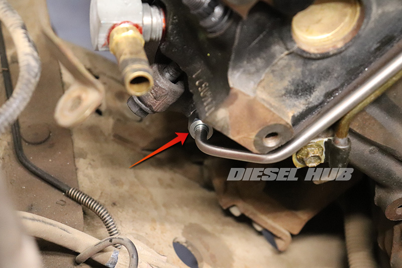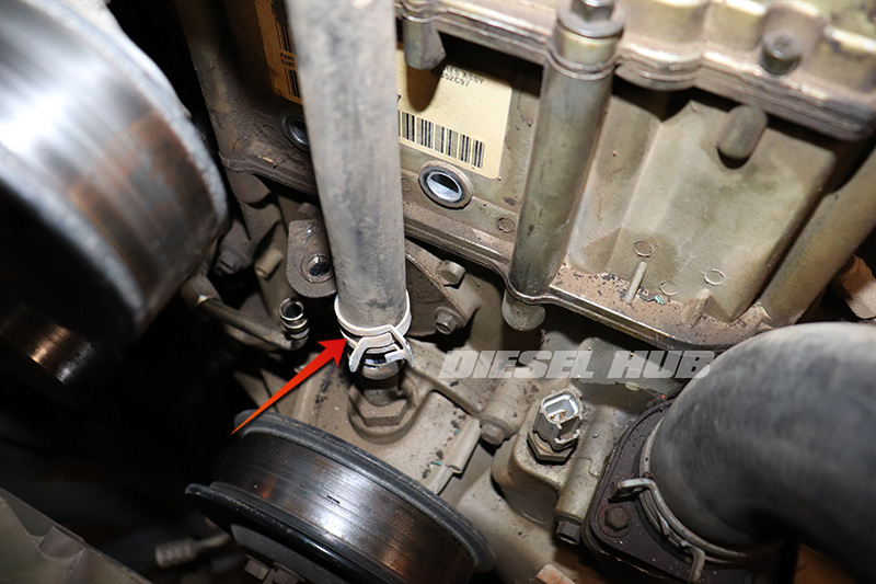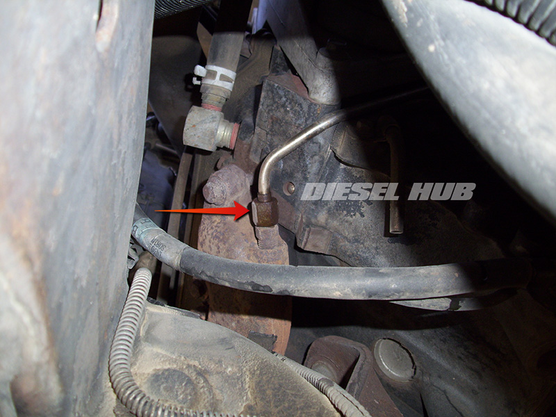 - Loosen the EBP sensor tube at the exhaust manifold with a 5/8 wrench/flare nut wrench, then completely unthread to remove.