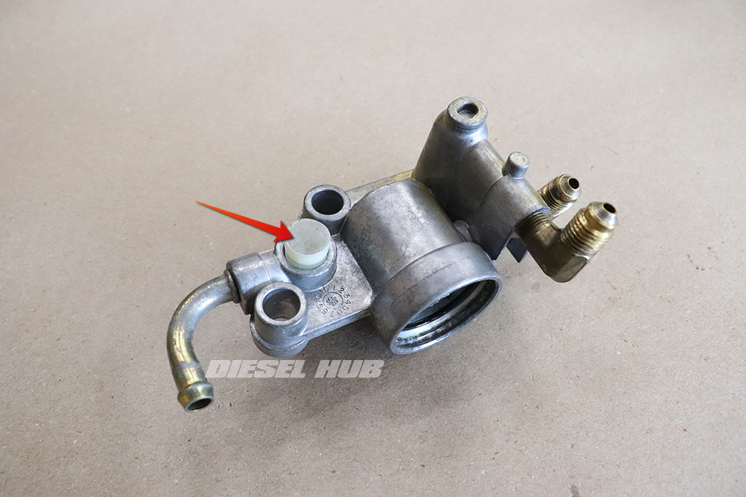 - Remove the fuel restriction sensor with a 1-1/16 inch socket. Note that on early style housings this is located at the base of the housing near the outlet fitting to the fuel pump. On later style housings it is threaded into the fuel pressure regulator assembly.