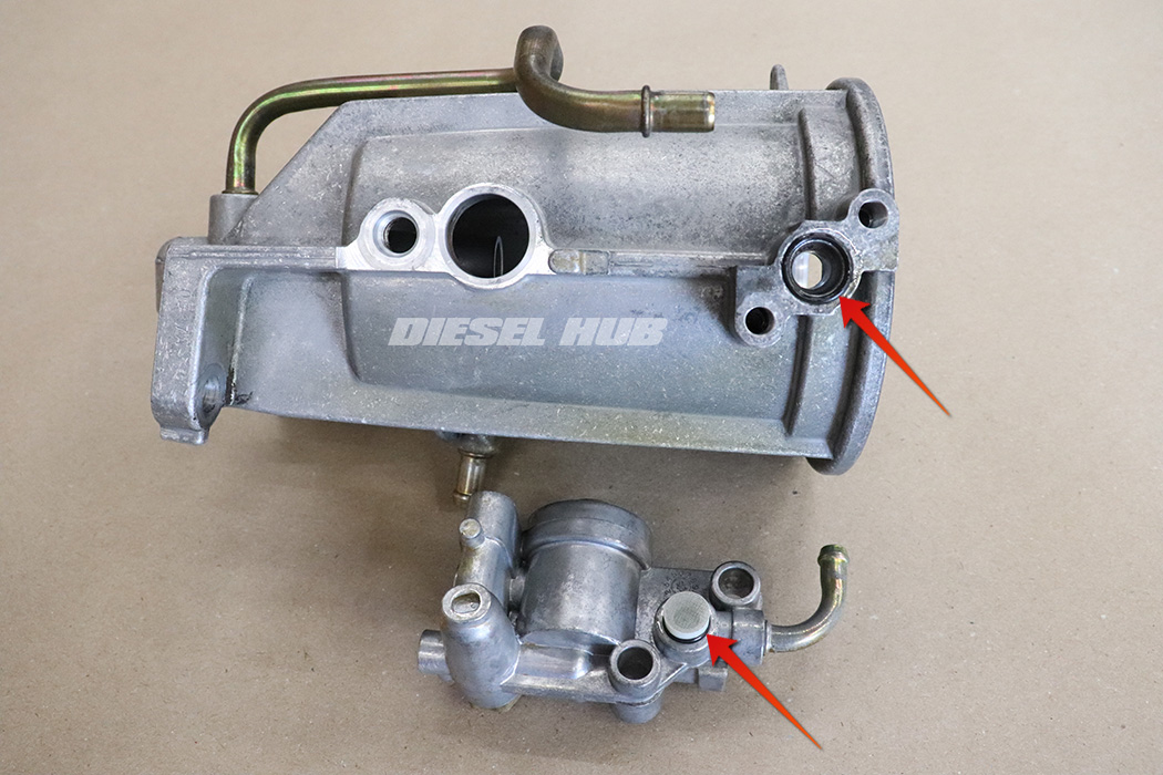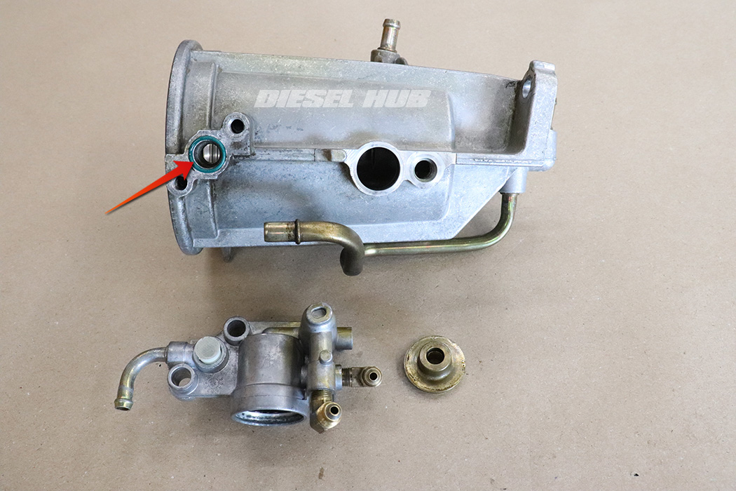 - Remove the single o-ring from the thermostat.