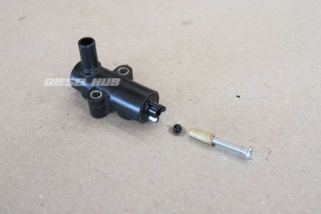 - Remove the nylon bushing, screen, and check ball. The screen often detaches from the bushing or may even remain inside the filter housing when the pressure regulator housing is separated. The screen can be cleaned and reused, even if it separates from the bushing.