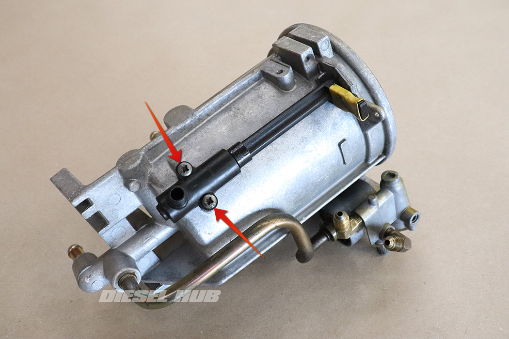 - Separate the pressure regulator housing from the fuel bowl. On late style housings, this will require pulling away from the metal bypass line. On early style housings, it should pull off the fuel bowl fairly easily. Note that there is a screen and nylon bushing in the passage between the regulator and filter housing.