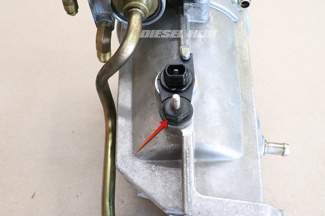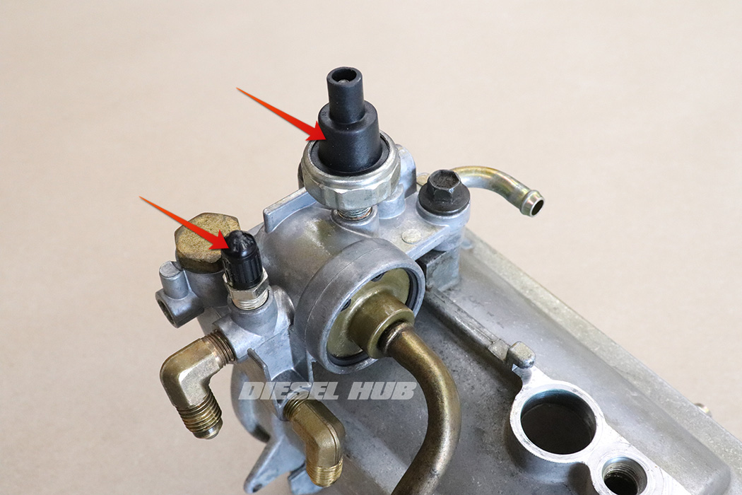 - Remove the air bleed/pressure test fitting with a 7/16 inch socket.