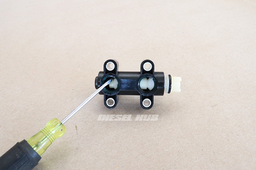 - Carefully retrieve the small plastic ball that lies beneath the bushing.