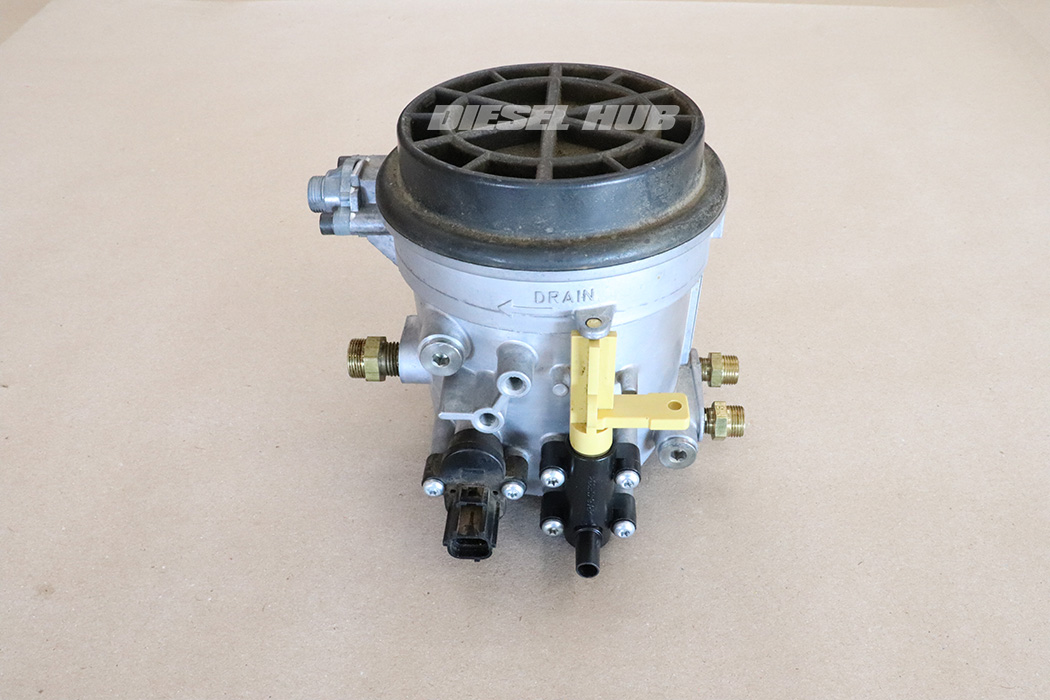 "Fuel bowl" is synonymous with the fuel filter housing, which is responsible for fuel filtration, water separation, and pressure regulation. The fuel restriction sensor, water-in-fuel sensor, and fuel heater are also incorporated into the filter housing. A drain valve mounted at the rear of the housing allows water to be drained off or the bowl to be drained for service/repairs. It is centrally located in the engine valley between the high pressure oil pump and turbocharger.