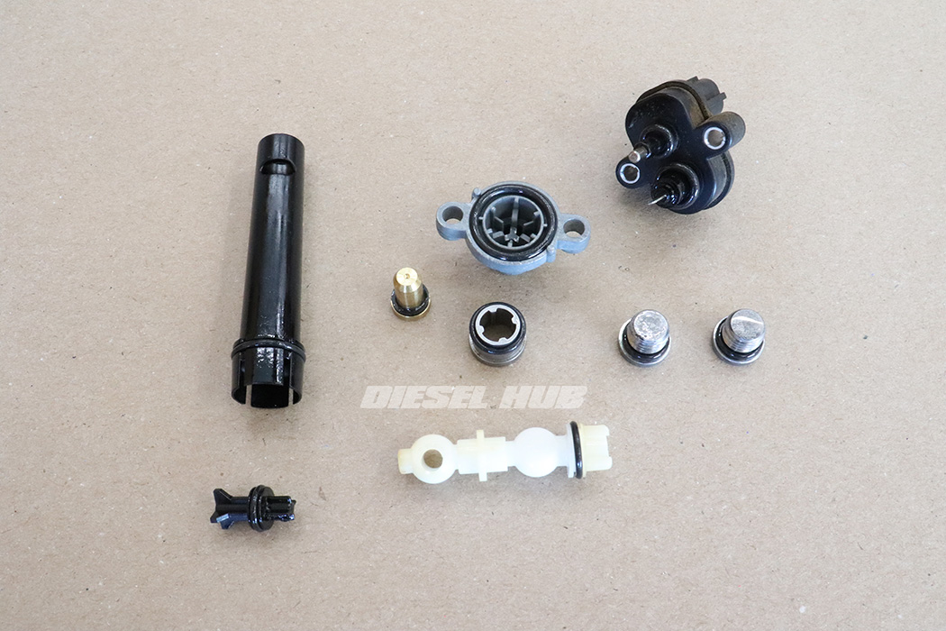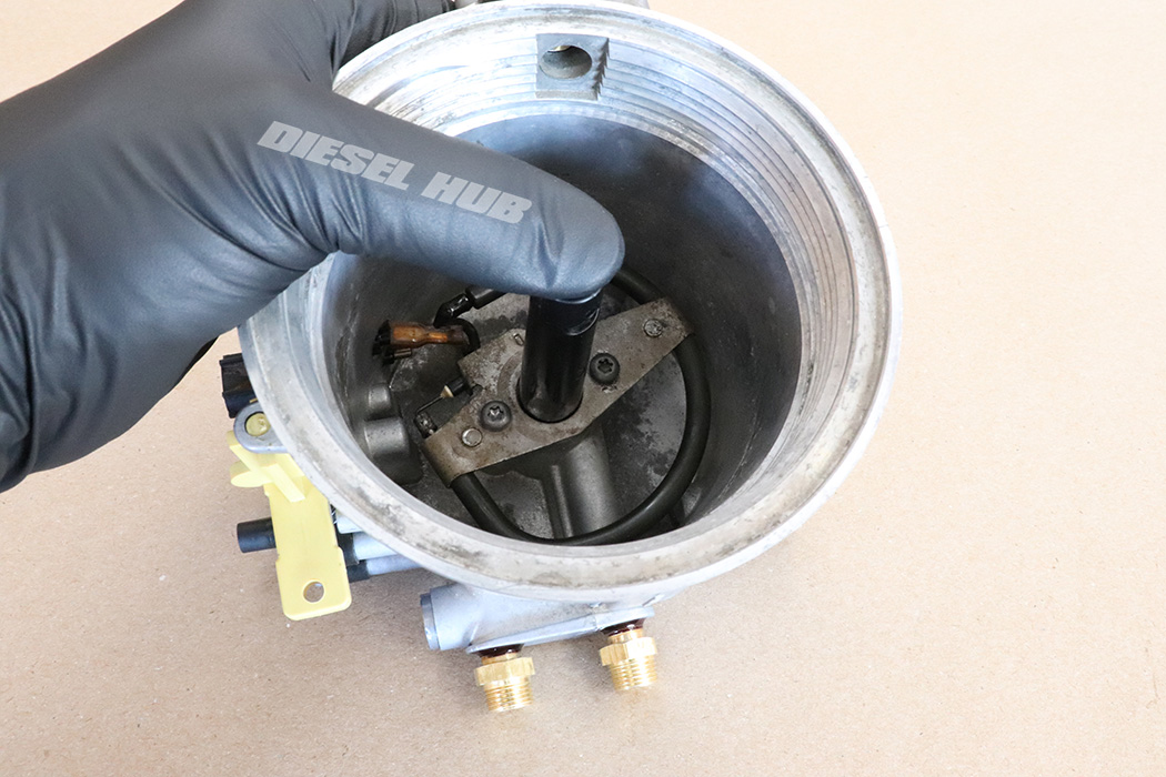 Do not use any of the aforementioned solvents on any of the plastic or rubber components that are to be reused. Plastic components can be washed with water or, preferable, electrical connector cleaner (i.e. CRC electronic cleaner) because it is a very mild solvent that will not dissolve plastics and is also safe to use on the water-in-fuel sensor and fuel heater element.