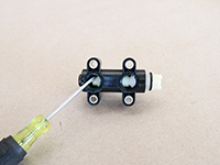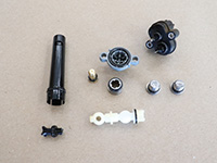 - Do not forget to install the small plastic ball, followed by the bushing.