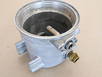 - The filter housing is now ready for a new filter and reinstallation. Do not forget to use new compression sleeves on the inlet/outlet fittings and a new drain valve hose connection.