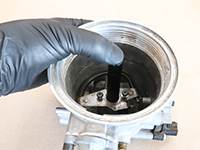 - Remove the fuel pressure regulator bushing by pushing it through the housing with a small socket.