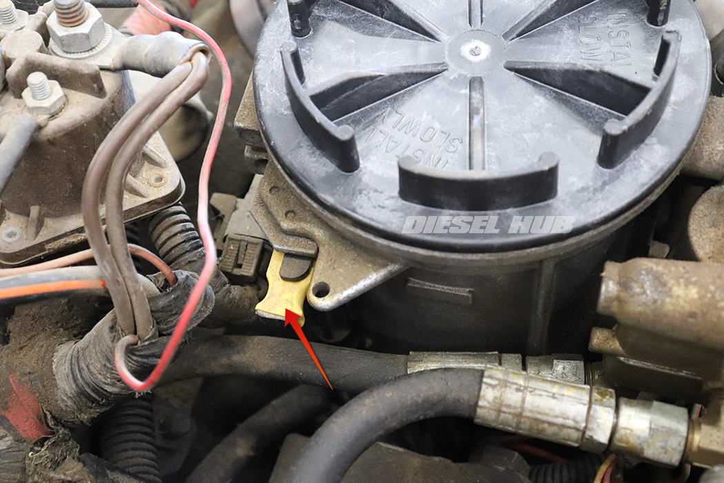 - Completely loosen the clamps on the hose that connects the lower fuel pump port to the bottom of the fuel bowl.