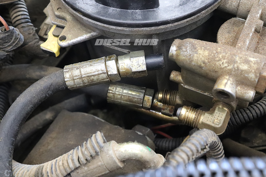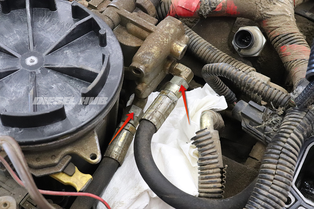- Plug the hose fittings with clean caps once they are removed at the pressure regulator. Any contaminants that enter these hoses will wind up in the fuel galleries in the cylinder head; fuel from these lines is screened, but not filtered before it re-enters the fuel pump.
