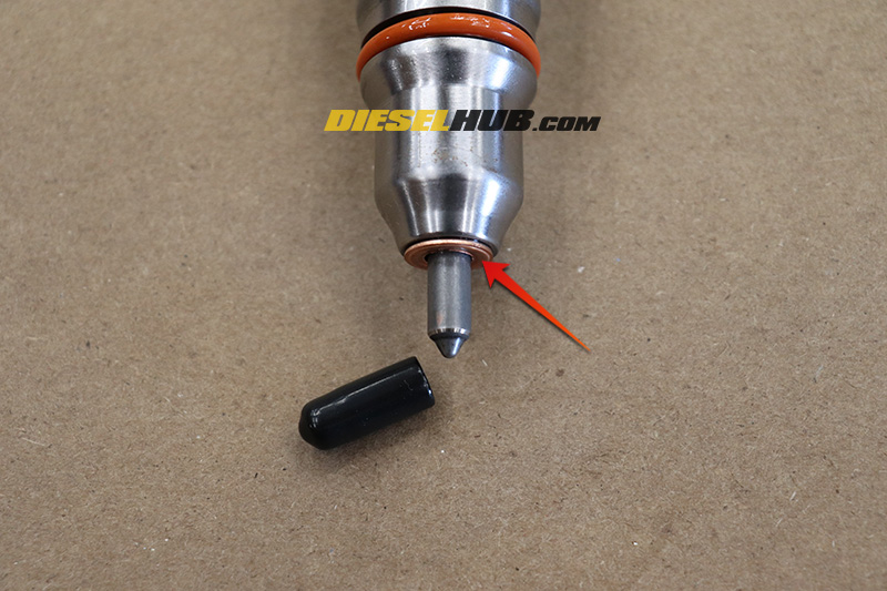 - If applicable, remove the protective cover from the injector nozzle and install the copper sealing washer (may be pre-installed on new or remanufactured injectors).
