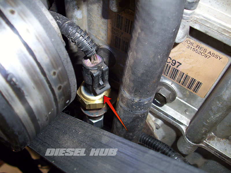 - Disconnect the oil temperature sensor at the rear of the HPOP reservoir (towards driver side).