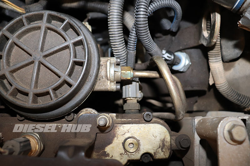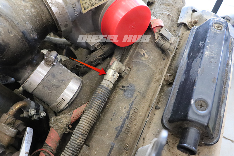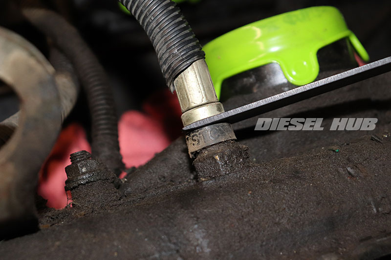 - Loosen the high pressure oil pump hoses on both cylinder heads with an 11/16 inch wrench.