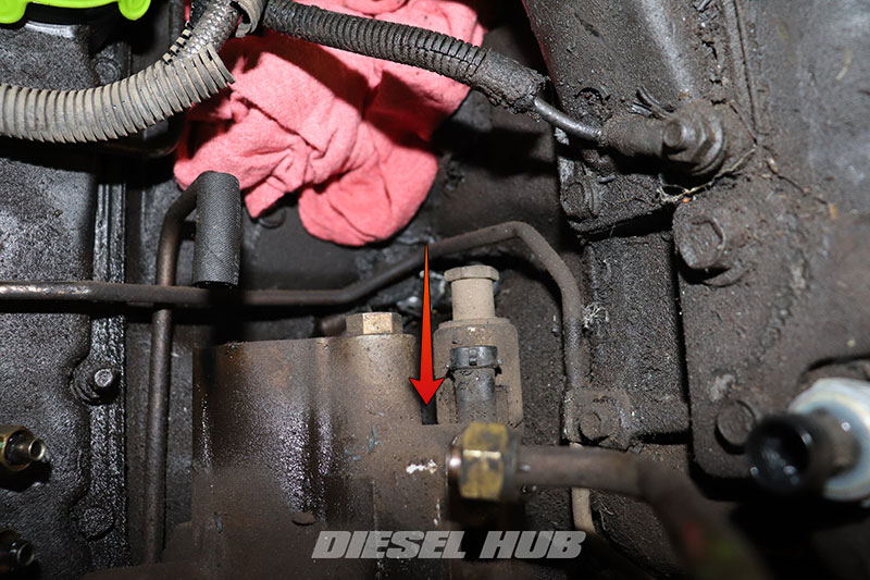 - Place several shop rags in the engine valley below and around the HPOP to collect any residual oil when the pump and hoses are disconnected.