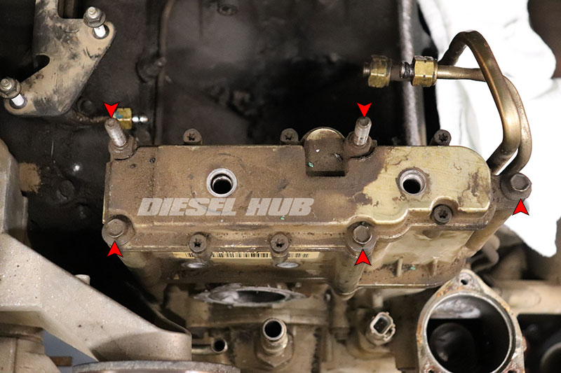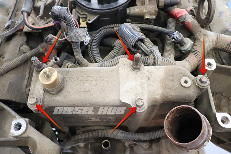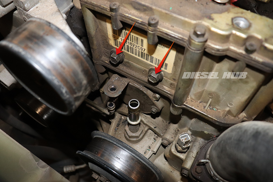 - Remove the (2) studded bolts with a 13 mm deep socket.