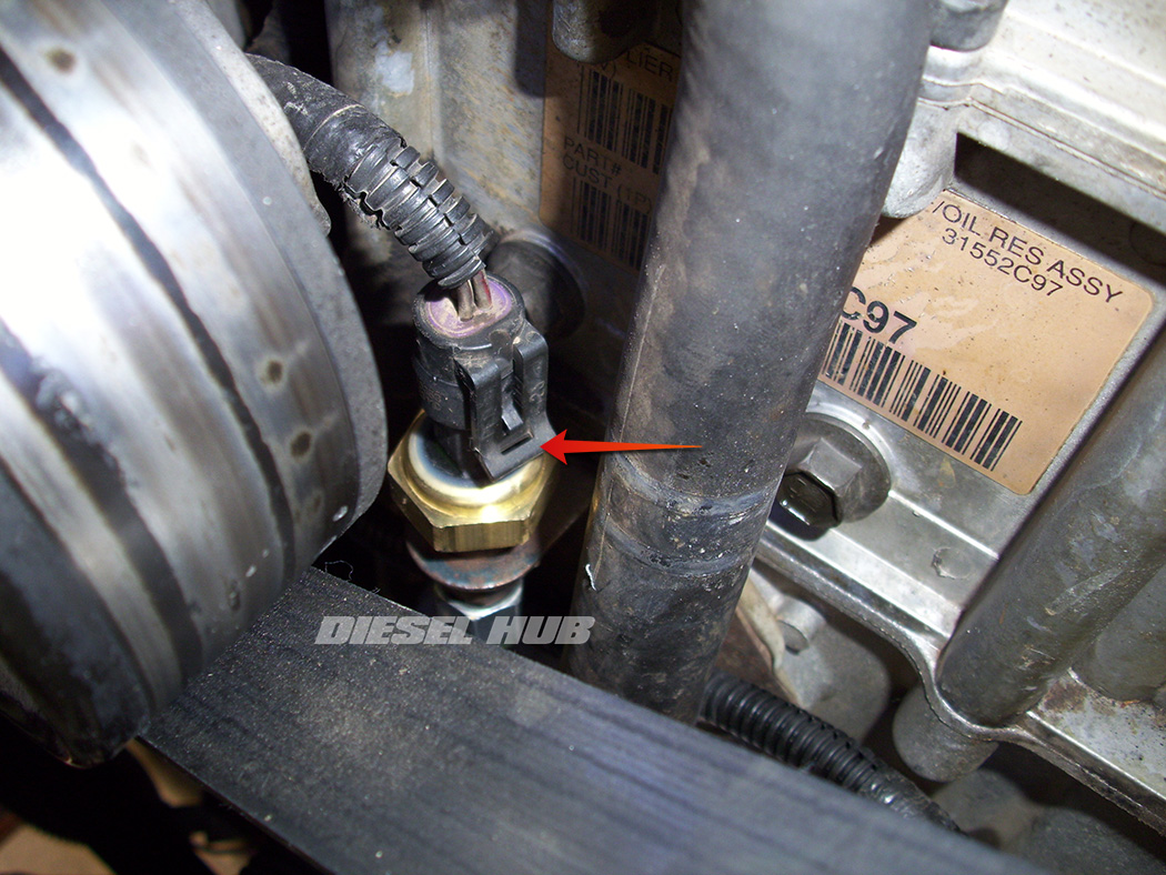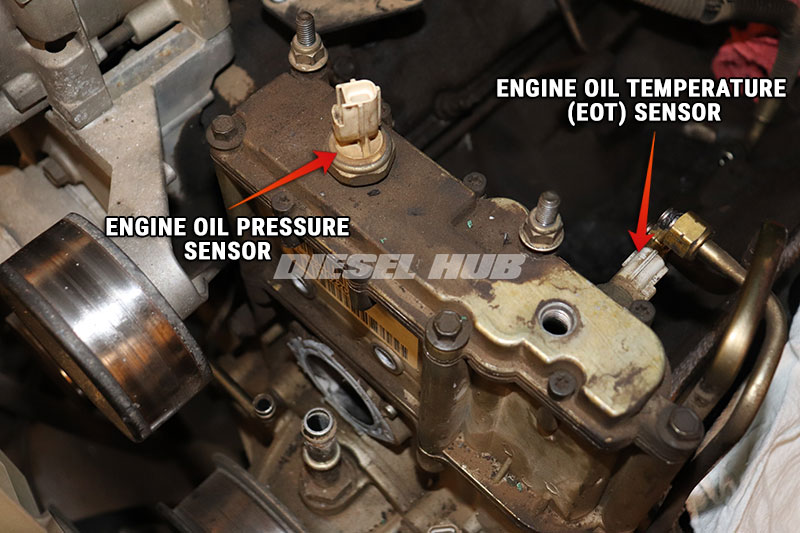 - Loosen the oil pressure and oil temperature sensors with a 1-1/16 inch deep socket, crowfoot wrench, or sensor socket.