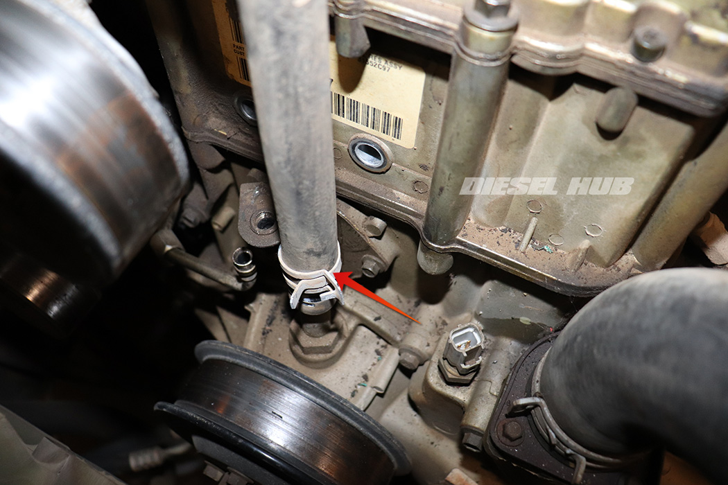 - If desired, drain the radiator and remove the heater core supply hose from the water pump nipple on the top of the water pump. It is entirely possible to work around the hose but it does interfere to some degree.