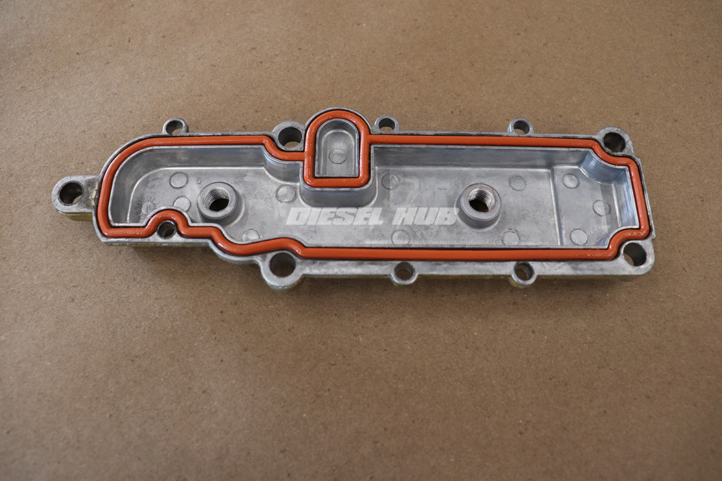 For the 1999 mid-model year upgrade (1999.5), International incorporated an integral filter screen (figure 3 below) into the lower sealing gasket of the reservoir. The screen exists to catch any large debris that could have made its way through the unfiltered oil circuit during initial startup. The gaskets are not interchangeable - a reservoir that originally came with the screen must be replaced like-for-like and reservoirs that did not feature this screen cannot be installed with one - there is no cross compatibility. Owners of 1999 model year vehicles must check to verify whether or not their unit requires the screen.