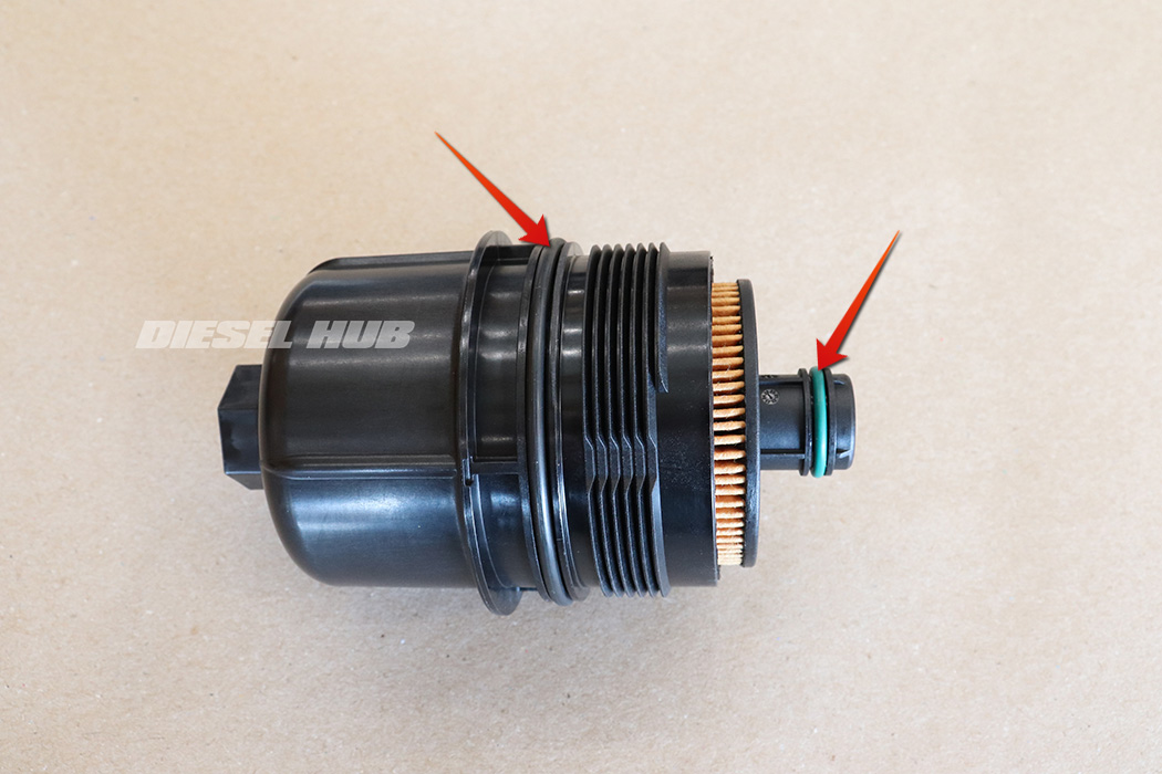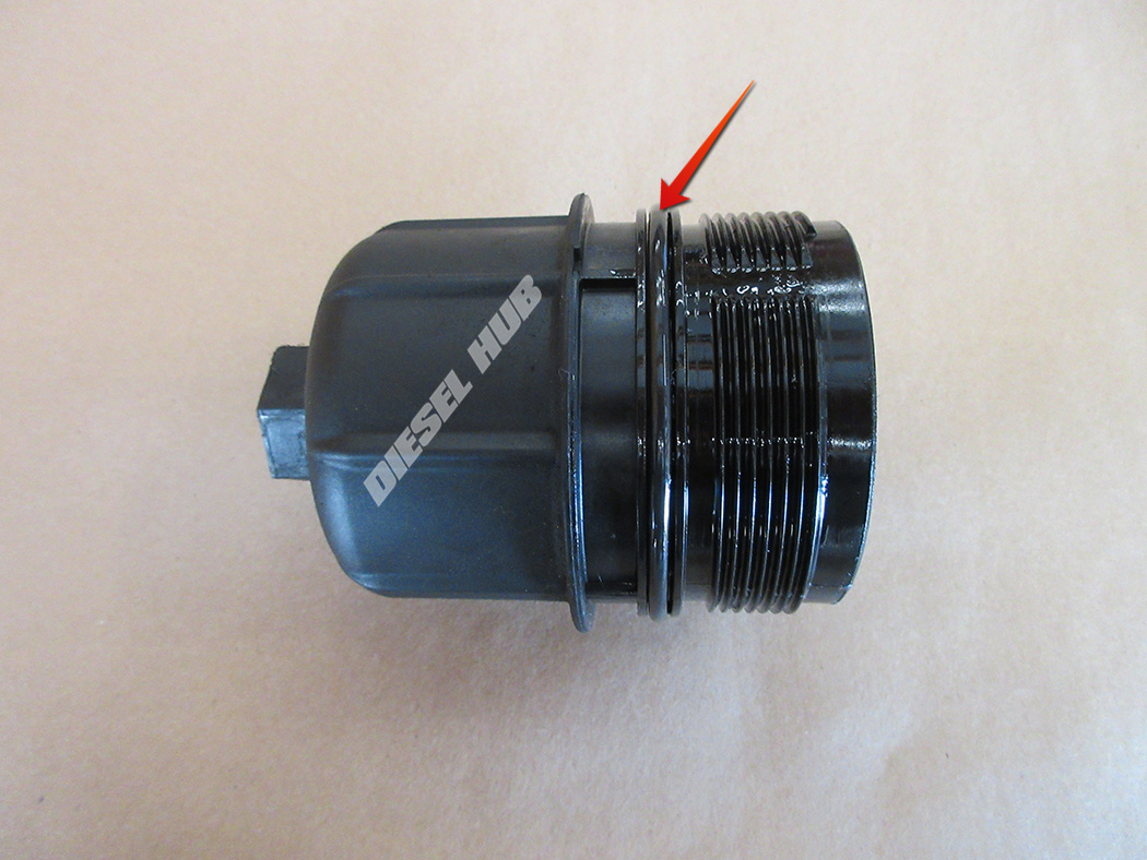 - On later engines where the cap and filter element are an assembly, liberally coat the large o-ring on the cap and the small o-ring at the tip of the filter with clean motor oil.
